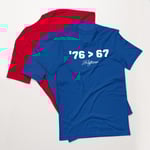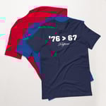 This bold design says it all: ‘76 > 67 — because freedom, grit, and GOAT-level energy never go out of style. Whether you’re a history teacher, a proud American, or just love a good numbers joke, this shirt brings that patriotic flex wherever you go.