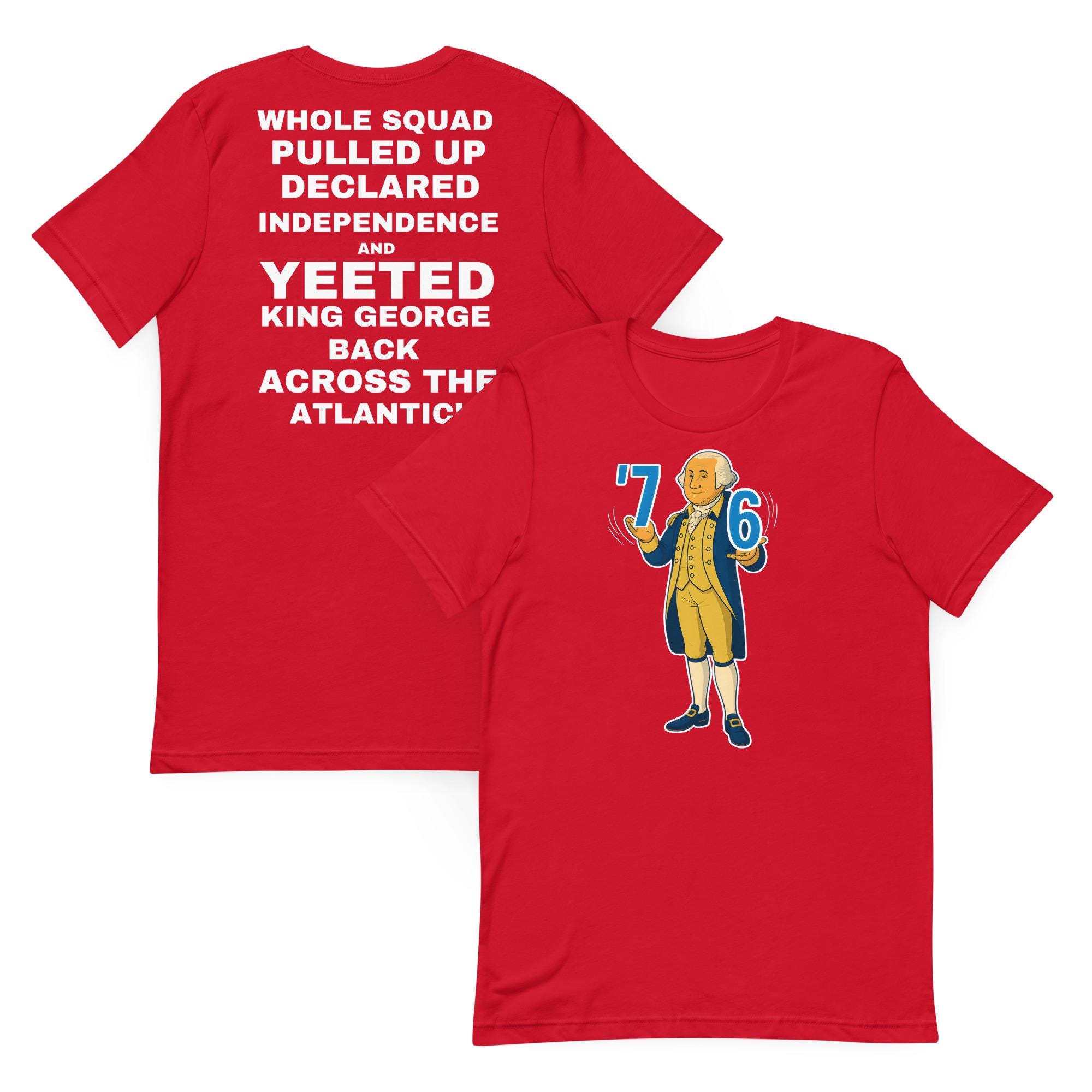 Let everyone know that King George III was YEETED back across the Atlantic! This t-shirt is everything you've dreamed of and more. It feels soft and lightweight, with the right amount of stretch. It's comfortable and flattering for all.