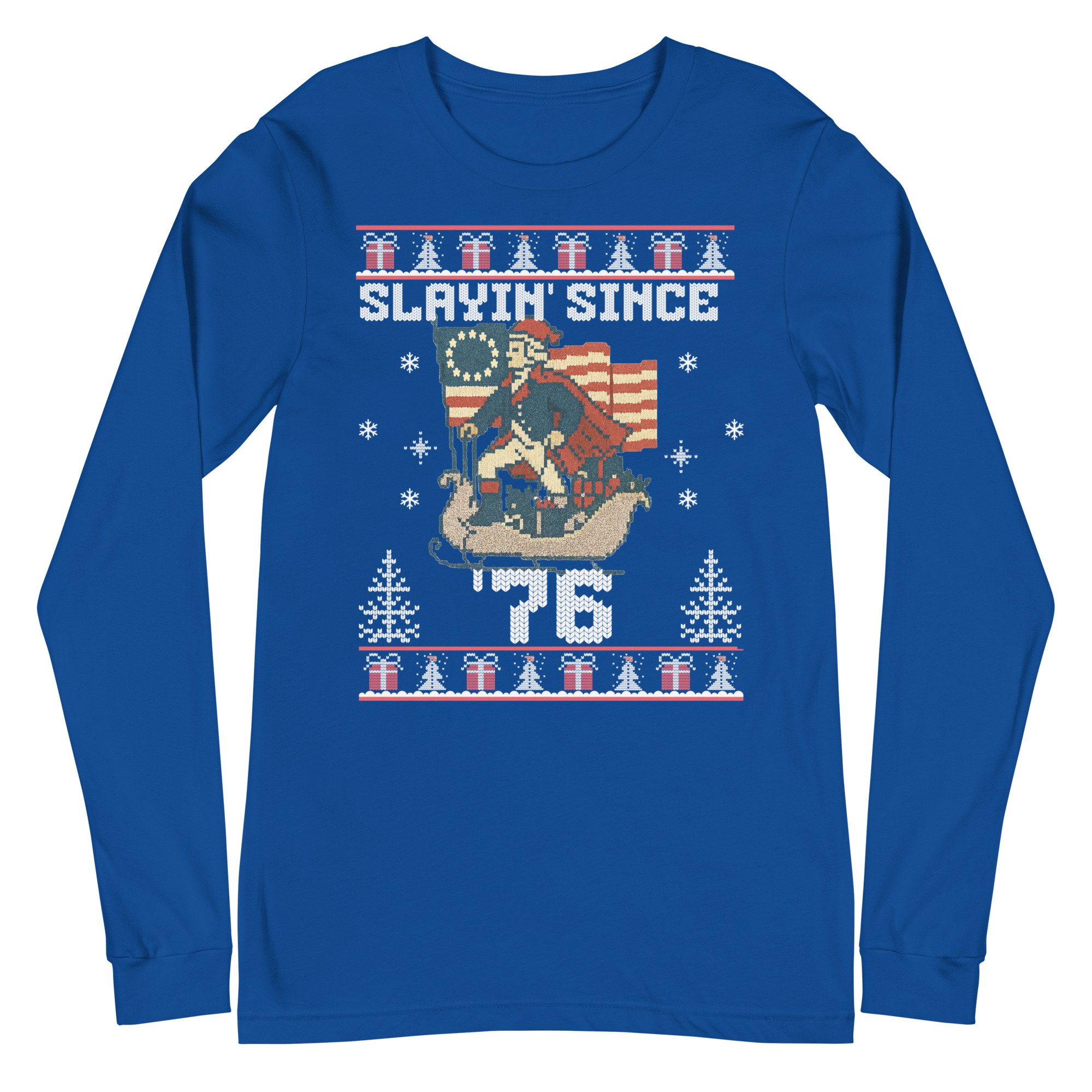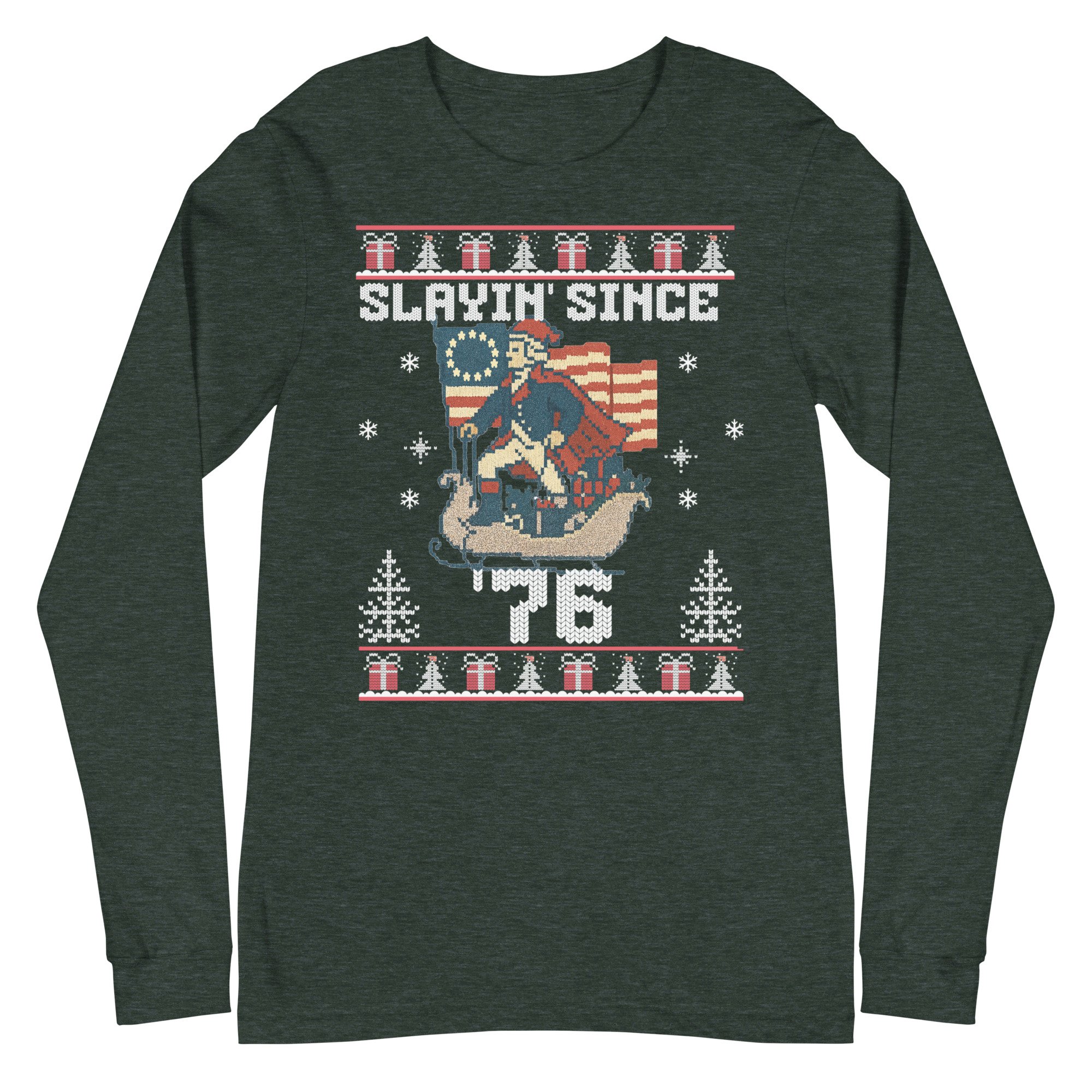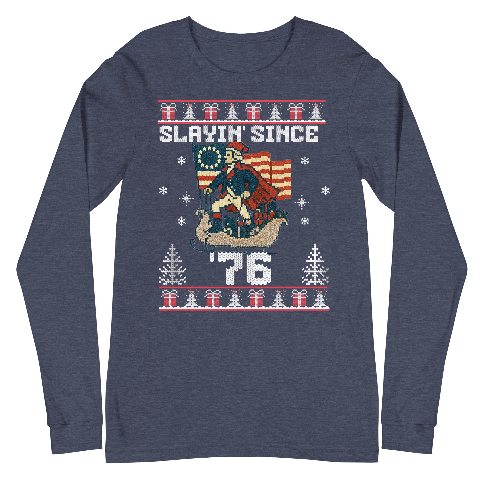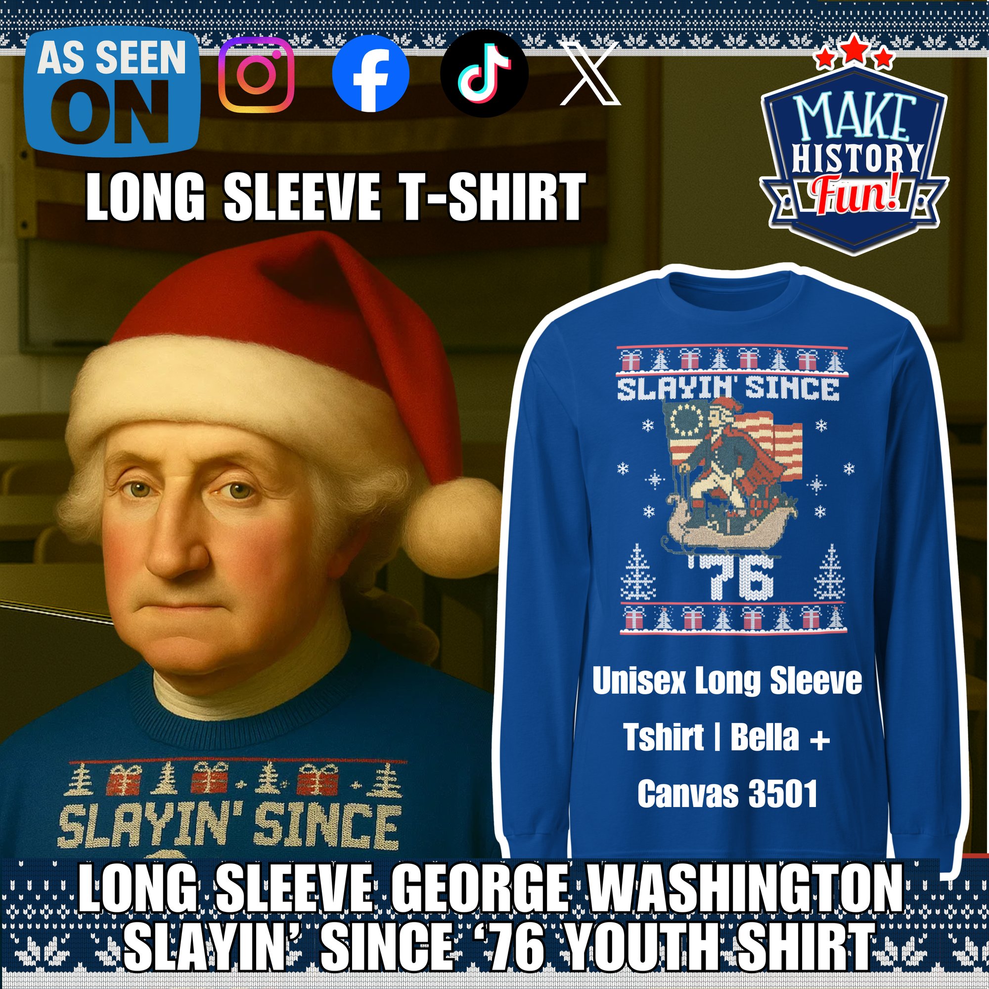 Step aside, elves—George Washington just entered the chat. This long-sleeve tee brings cozy vibes and Founding-Father flair together in one legendary fit. Whether you’re teaching, learning, or just embracing your inner 7-6 energy, this shirt keeps the drip historical.