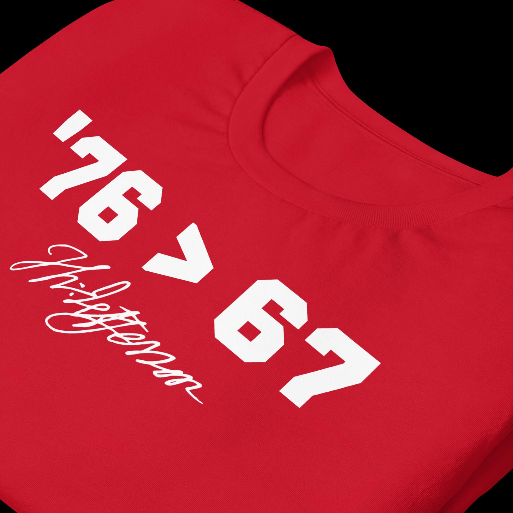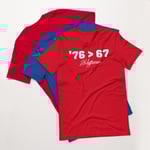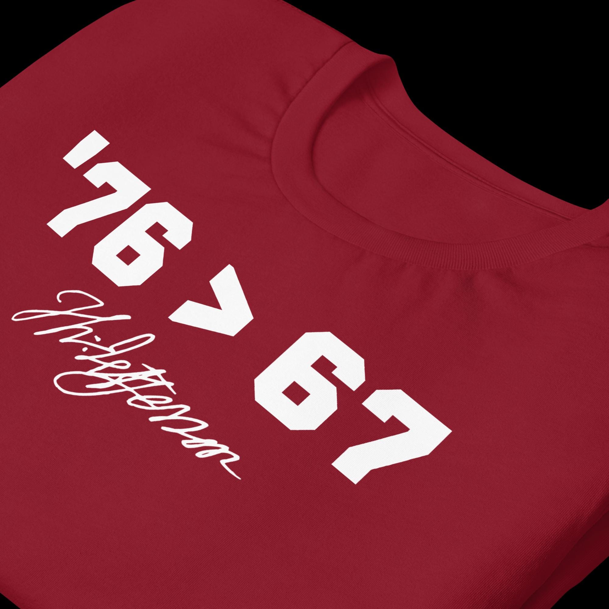 This bold design says it all: ‘76 > 67 — because freedom, grit, and GOAT-level energy never go out of style. Whether you’re a history teacher, a proud American, or just love a good numbers joke, this shirt brings that patriotic flex wherever you go.