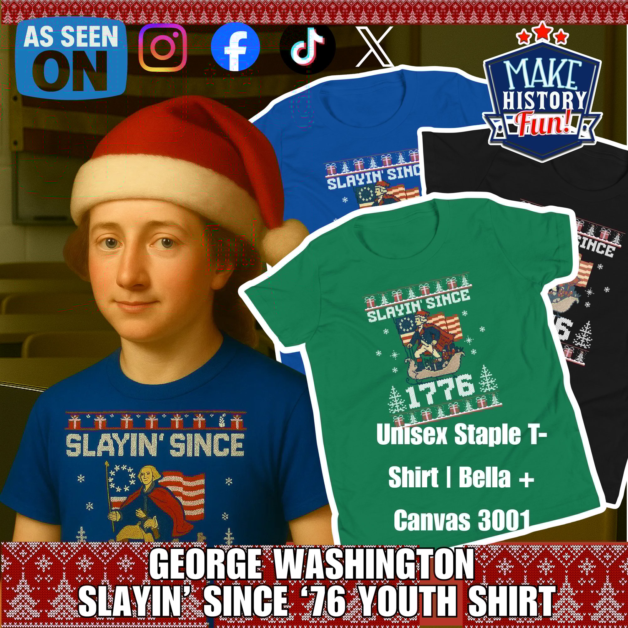 Perfect for history class, Spirit Days, field trips, or any kid who loves rocking a little patriotic drip. Soft, comfy, and guaranteed to make your child the freshest freedom-fighter in the hallway.