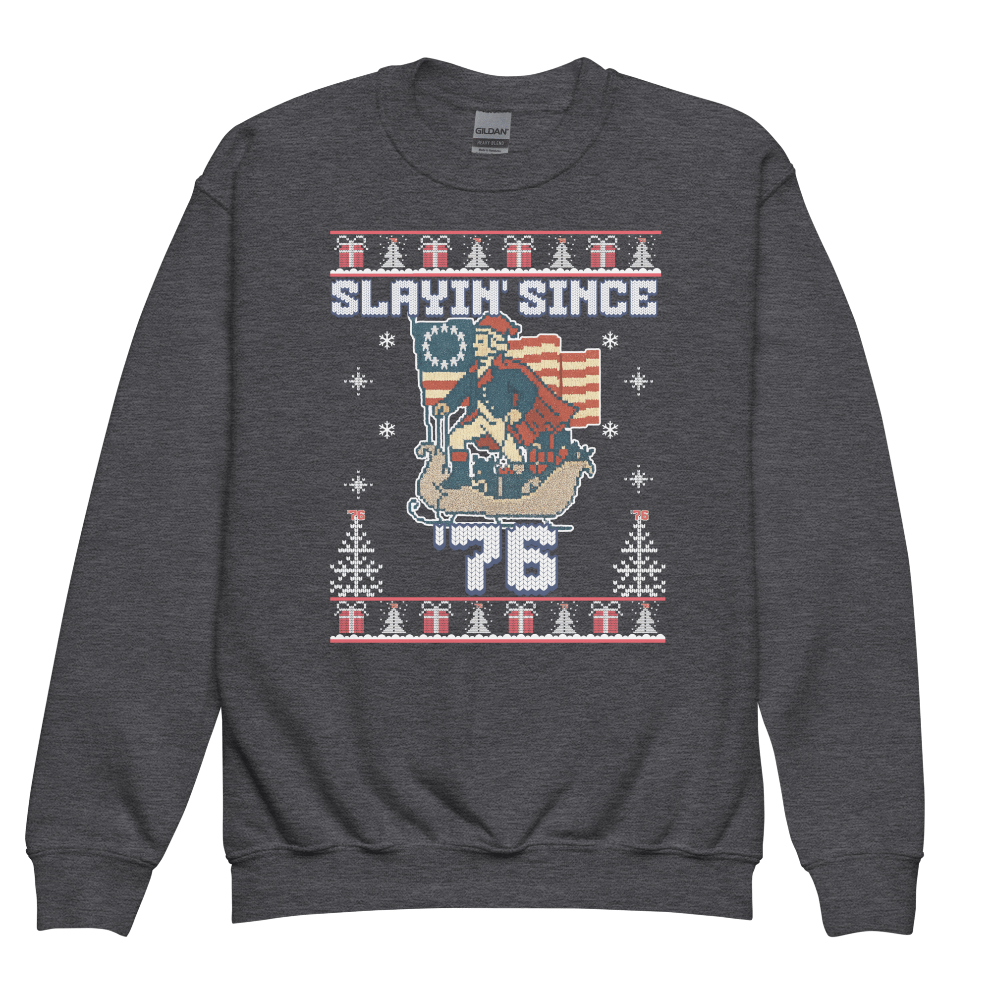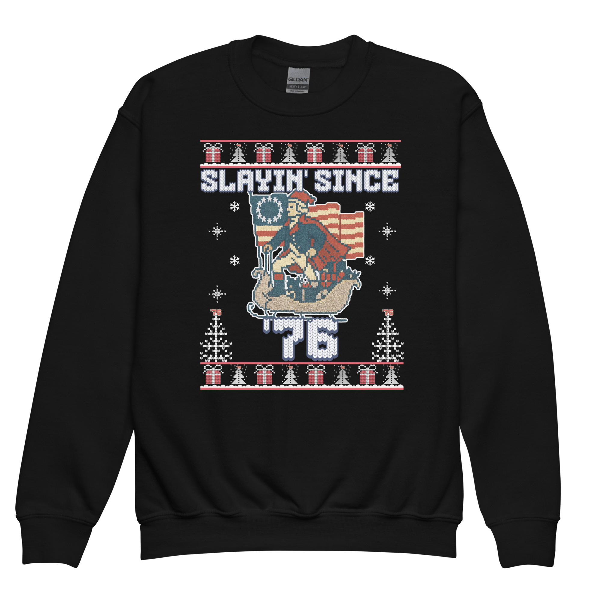Soft, comfy, and classroom-approved, this sweatshirt lets students show off their patriotic drip while learning about the Revolution. Whether they’re debating 6-7 vs. 7-6, studying the Founding Fathers, or just rocking some historical rizz in the hallway, this is the perfect fit.