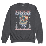 This cozy, high-energy sweatshirt is the ultimate way for kids to rep their love of history and their sense of humor! Featuring the bold phrase “Slayin’ Since 7-6”, this design celebrates the legendary year 1776 — the moment America said “We’re built different” and dropped the most iconic glow-up in world history.